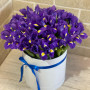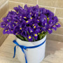 45 фиолетовых ирисов в шляпной коробке в Славянске-на-Кубани